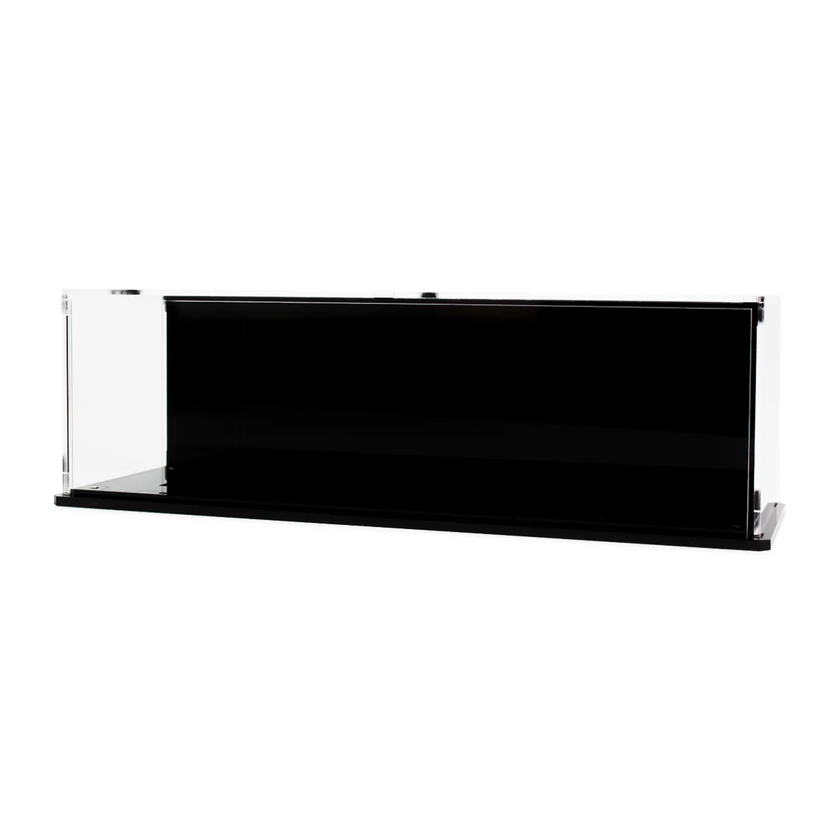 - The crystal clear 3mm buildable display case clicks together and slots firmly into holes in the base plate.