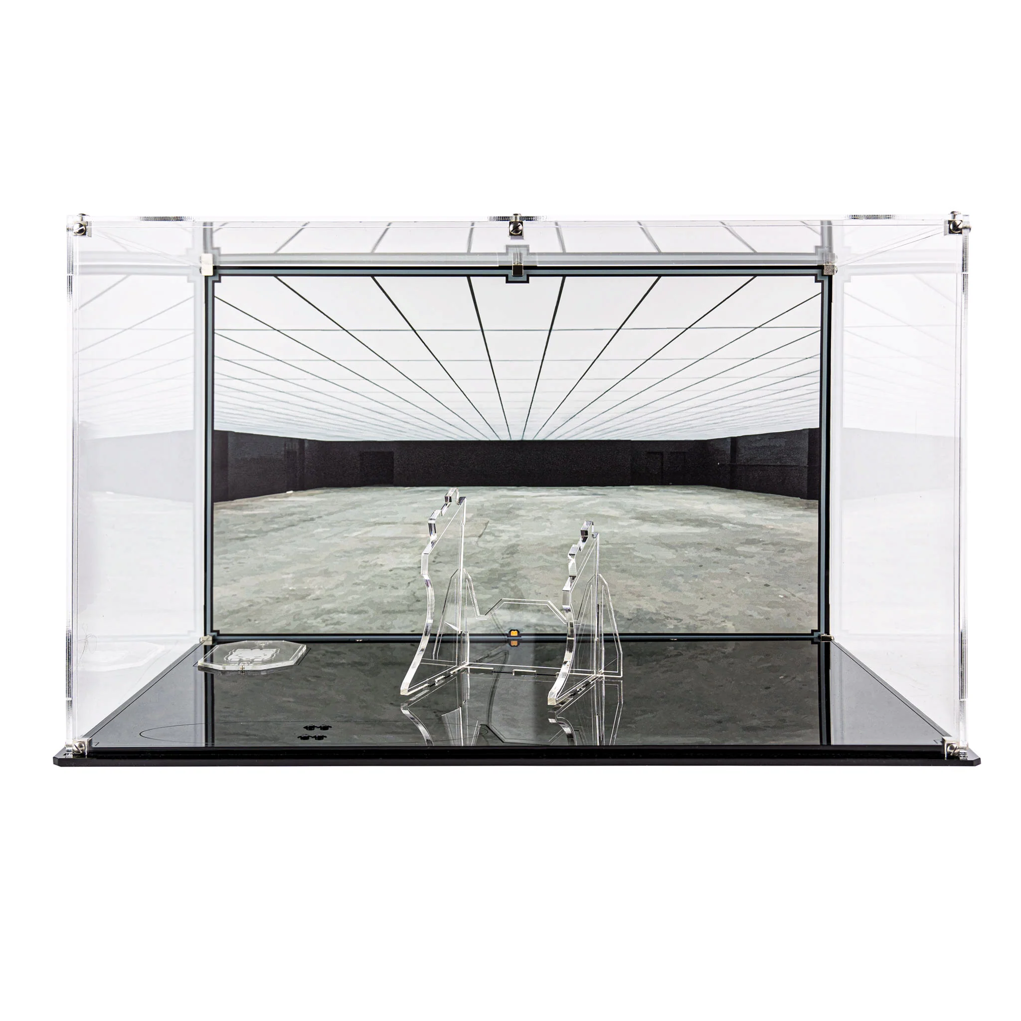 - 3mm crystal clear Acrylic display case, assembled with our uniquely designed screws and connector cubes, allowing you to easily secure the case together.